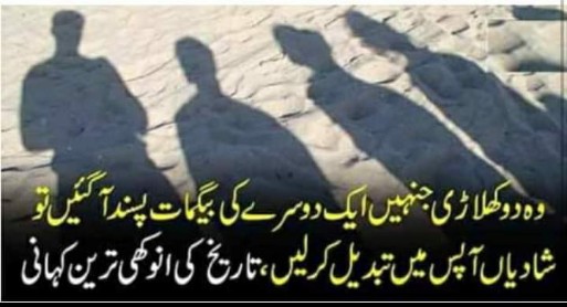 ماضی میں بیس بال کے دو امریکی کھلاڑیوں کے باہم بیویاں تبدیل کرنے کا ایک ایسا واقعہ پیش آ چکا ہے کہ آج بھی سن کر لوگ حیران رہ جاتے ہیں۔ ڈیلی سٹار کے مطابق یہ کھلاڑی فریٹز پیٹرسن اور مائیک کیکچ تھے جو 1972ءمیں اپنی بیویوں کے ہمراہ ایک باربی کیو پارٹی میں شریک ہوئے جہاں ان دونوں کو ایک دوسرے کی بیوی پسند آ گئی اور دونوں نے قانونی طور پر بیویاں آپس میں تبدیل کر لیں۔ رپورٹ کے مطابق کھلاڑیوں کے لیے اس باربی کیو پارٹی کا اہتمام نیویارک پوسٹ کے سپورٹس رائٹر مورے ایلن نے کیا تھا۔ پیٹرسن نے بیویاں تبدیل کرنے کے بعد اس معاملے پر بات کرتے ہوئے بتایا تھا کہ ”ہم پارٹی ختم ہونے کے بعد اپنی اپنی کار میں نکلے لیکن غیرارادی طور پر گلی میں ہم نے آگے پیچھے اپنی گاڑیاں روک دیں۔ میں نے اپنی بیوی میرلین سے کہا کہ تم مائیک کے ساتھ گاڑی میں کیوں نہیں بیٹھ جاتیں اور میں اس کی بیوی سوزان کو اپنے ساتھ بٹھا لیتا ہوں۔ ہم نے ایسا ہی کیا اور اسی طرح بیویاں تبدیل کرکے انہیں اپنے ساتھ گھر لے گئے۔ اگلے روز ہم چاروں ملے