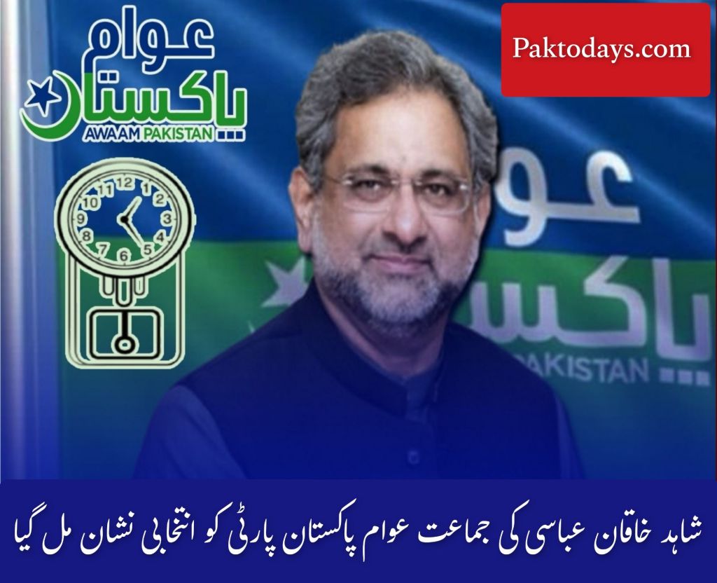 شاہد خاقان عباسی کی جماعت عوام پاکستان پارٹی کو انتخابی نشان مل گیا۔الیکشن کمیشن نے عوام پاکستان پارٹی کوانتخابی نشان گھڑیال الاٹ کردیا ہے، عوام پاکستان پارٹی نے انٹرا پارٹی الیکشن کے نتائج الیکشن کمیشن میں جمع کروائے تھے۔لیکشن کمیشن نے عوام پاکستان پارٹی کے انٹرا پارٹی الیکشن کو تسلیم کرلیا۔واضح رہے کہ 8 فروری 2024 کے الیکشن کے بعد6 نئی سیاسی جماعتیں الیکشن کمیشن میں رجسٹرڈ ہوئیں جن میں سے2024 میں بلوچستان قومی اتحاد، پاکستان عوامی قوت، پاکستان خدمت خلق لیگ، ٹیکنالوجی موومنٹ پاکستان اور پختونخواعوامی نیشنل پارٹی شامل ہوئی جب کہ 2025 میں پہلی سیاسی جماعت عوام پاکستان پارٹی کو الیکشن کمیشن نے رجسٹرکرلیا، الیکشن کمیشن میں رجسٹرڈسیاسی جماعتوں کی تعداد 168 ہوگئی۔شاہدخاقان عباسی عوام پاکستان کے کنوینر ہیں اورمفتاح اسماعیل عوام پاکستان کے سیکریٹری جنرل ہیں۔