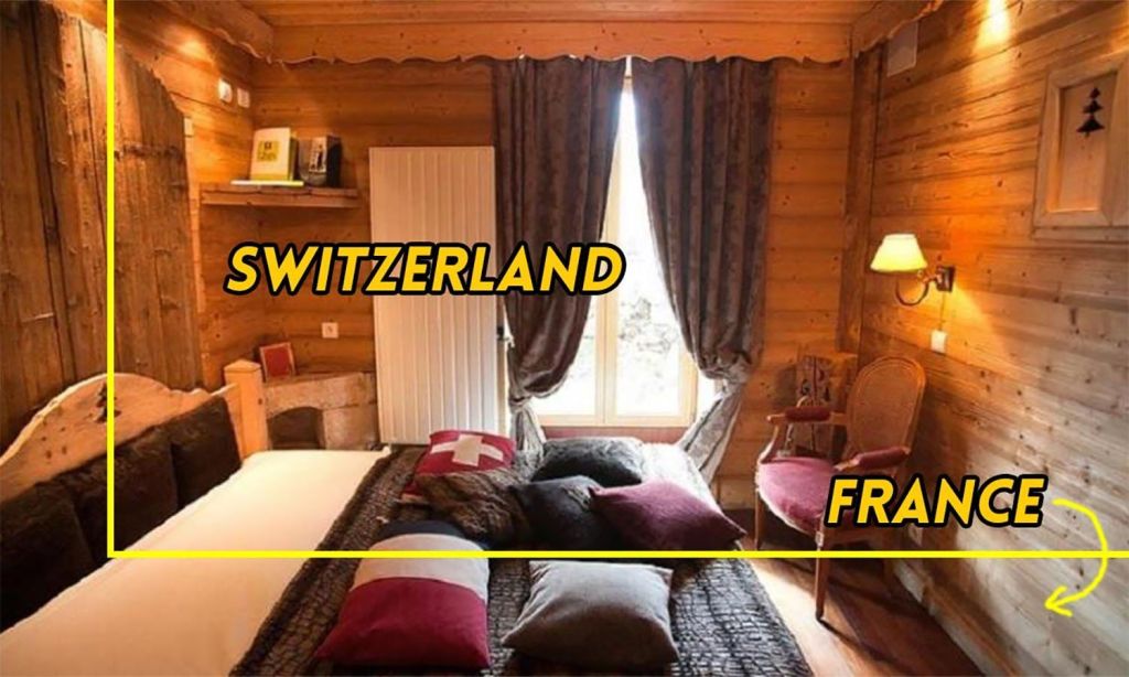 اس ہوٹل کے کچھ کمرے ایسے ہیں کہ اس کا آدھا حصہ فرانس اور آدھا سوئٹزر لینڈ میں ہے اسی وجہ سے اگر مہمان ان کمروں میں سوئے تو ان کا سر سوئٹزرلینڈ اور ٹانگیں فرانس میں ہوتی ہیں۔