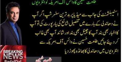 میڈیا پر بدترین سنسر شپ اگر آپ نے دھاندلی کےبارے میں تفصیل شائع کی یا رپورٹ کی تو آپ کا اخبار بھی بند آپ کا چینل بھی بند اور شائد آپ بھی غائب کردیئے جائیں طلعت حُسین نے وائس آف امریکہ سے انٹرویو میں دھاندلی کا بھانڈہ پھوڑ دیا